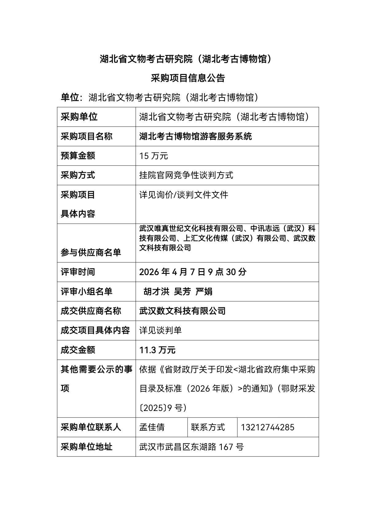 湖北省文物考古研究院(湖北考古博物馆)采购项目信息公告